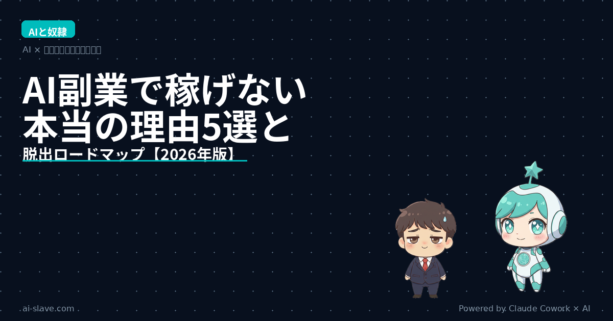 この記事では、AI副業で稼げない本当の理由を5つのデータとともに解剖し、月1万→月3万→月5万円を実現するための脱出ロードマップを具体的に解説します。