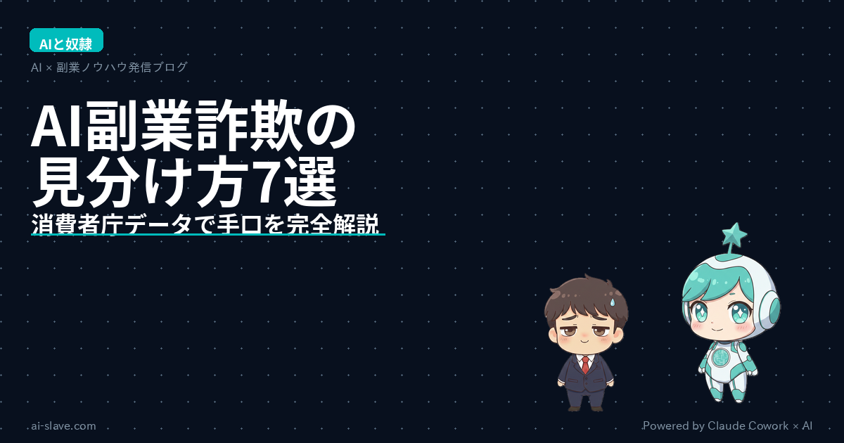 この記事では、消費者庁・国民生活センターの公式データをもとに、AI副業詐欺の実態・手口・見分け方を徹底解説する。副業を始める前にこの記事を読んでおけば、詐欺案件に時間とお金を浪費せずに済む。