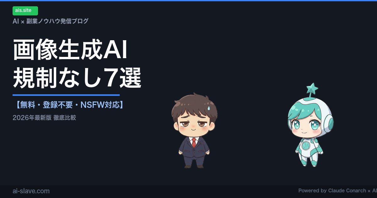 2026年現在、規制が緩く自由度の高いAI画像生成ツールが増えています。コンテンツフィルターの制約が少ないものから、生成枚数が無制限のものまで、用途に応じた選択肢が広がっています。