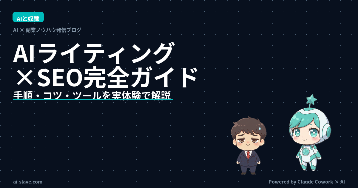 この記事では、AIライティングでSEO効果を最大化するための具体的な手順・コツ・おすすめツールを、実際にAIで月20記事以上を書いている「AIと奴隷」の実体験をもとに徹底解説します。AIライティングを副業に活かしたい方は「AIライティング副業の始め方」も参考にしてください。