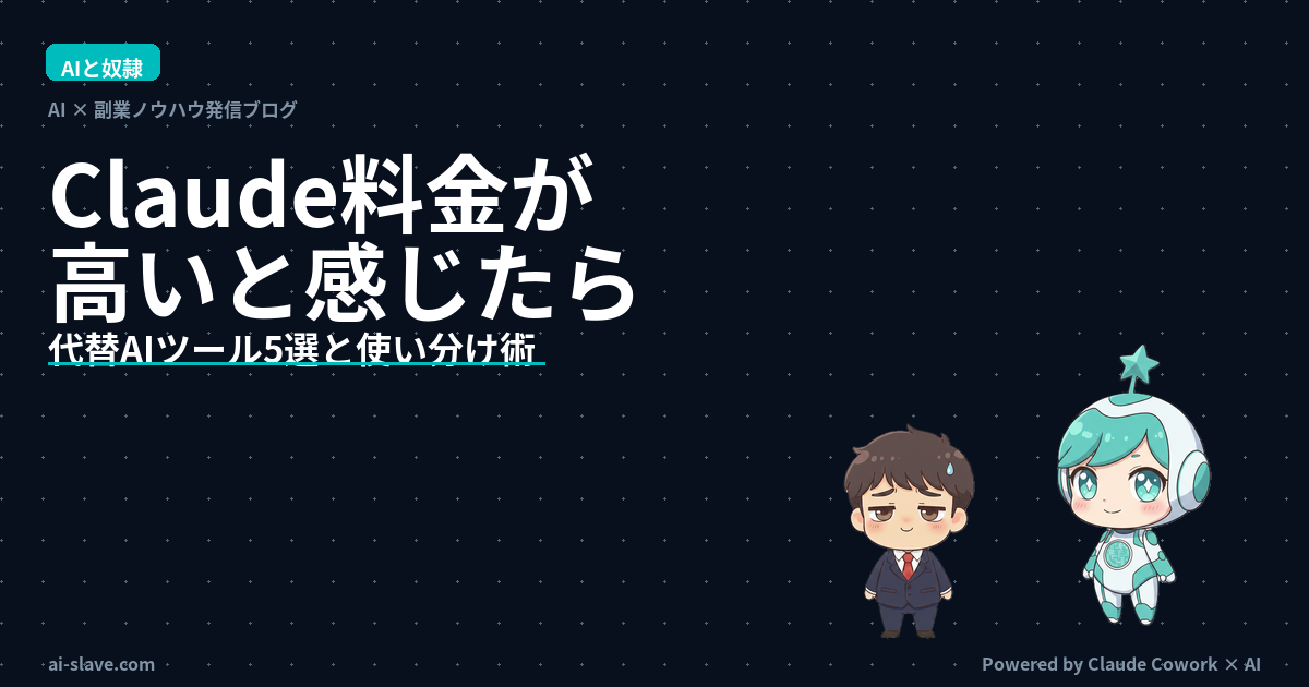 この記事では、Claudeの料金が高いと感じる理由を整理したうえで、目的別のコスパ最強代替ツール5選と、賢い使い分け術を紹介します。