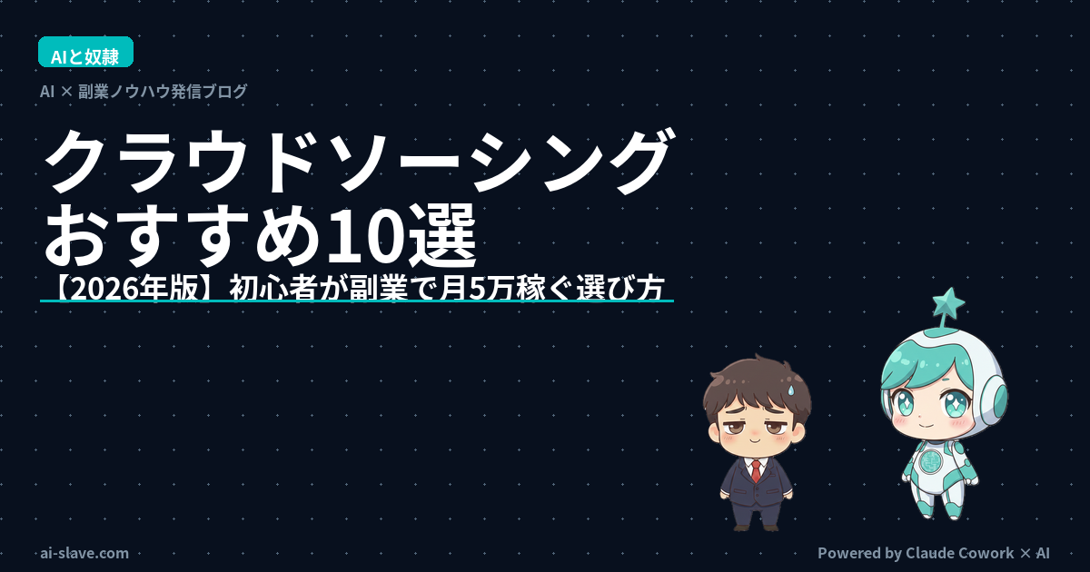 このブログ「AIと奴隷」で一貫して��えているのは、会社員を辞めずに、まず1件だけ案件をやってみるということ。いきなり独立する必要はありません。本業の安定収入を確保したまま、クラウドソーシングで「自分のスキルがお金になる」という体験を1回だけしてみる。その1件が、副業人生の最大の転換点になります。