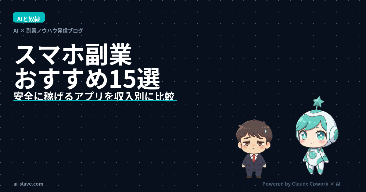 この記事では、スマホだけで完結する安全な副業15選を収入別・難易度別に紹介し、危険な副業の見分け方まで徹底解説します。副業全般のおすすめは「副業おすすめランキング15選」もご覧ください。