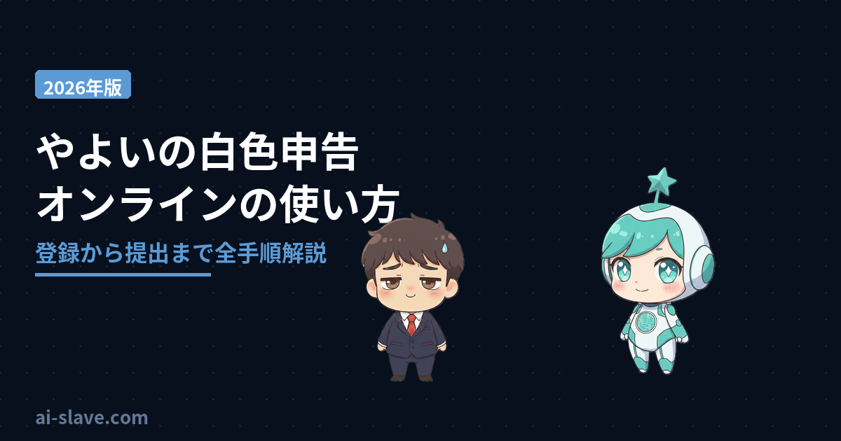 この記事では、やよいの白色申告オンラインの使い方を、2026年版の最新画面に沿って登録→初期設定→収支入力→確定申告書作成→提出の5ステップで解説します。副業をしている会社員やフリーランス初心者でも、この記事を読みながら操作すれば30分〜1時間で確定申告が完了します。